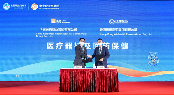 2022年11月6日,第五届中国国际进口博览会专业观众开放首日,香港维健医药集团有限公司(以下简称“维健医药”)与华润医药商业集团有限公司(以下简称“华润医药商业”)关于医疗器械及医药保健战略合作签约活动于中央企业交易团---华润集团专场举行。