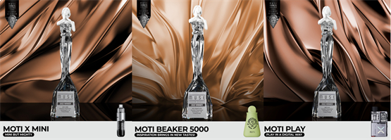 据介绍,雷炎科技此次提报获奖的3款产品均已全部在海外市场销售,动销良好,是兼具工业设计美学和市场成功验证的产品。其中MOTI X MINI是一款行业领先的大烟雾电子烟,具备超大烟雾和双模式可调节,最大亮点是小巧而强劲,科技感十足;MOTI BEAKER 5000是一款行业创新的时尚电子烟,采用一体成型的流畅外观设计,内部是纯天然有机棉,兼具高级审美和环保;MOTI PLAY是一款行业创新的大烟雾电子烟,可与手机形成交互,兼顾实用性和可玩性。
