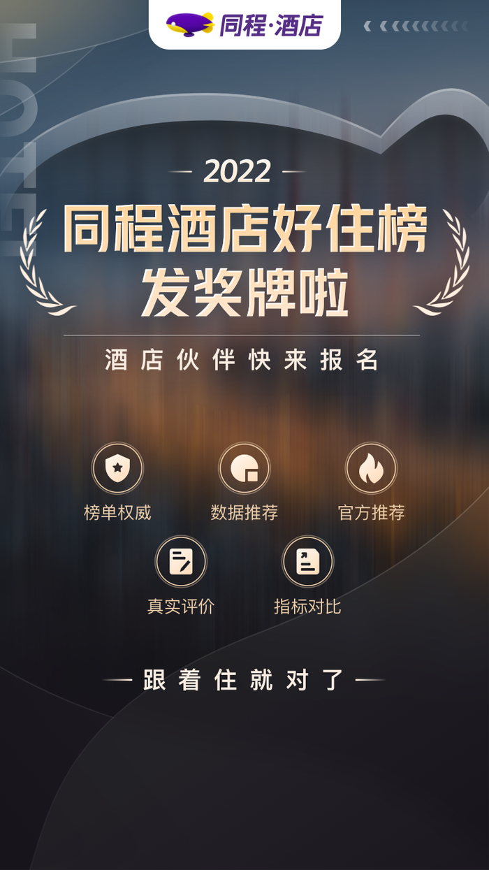 11月1日,同程旅行宣布开启“同程好住榜2022年度酒店评选活动”,这也是同程酒店第二届商家评选活动。评选活动设置了8种类型榜单及17种特色子榜单,覆盖全国超300个城市。即日起至11月20日,商家可通过同程旅行商家后台系统以及同程酒店商家中心公众号提交申请。最终评选结果将于2023年1月公布。