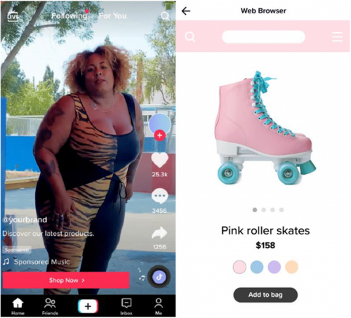 Video Shopping Ads展示在For You页面,将创意视频和产品卡片进行搭配,组成不同组合轮流切换推送,并采用更智能的定向设计,将产品更精准地推送给可能感兴趣的用户。用户点击广告之后可在开通TikTok Shop市场的店铺内进行购买,或跳转入品牌广告主的网站或App登陆页更完整了解产品。