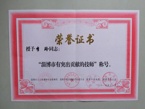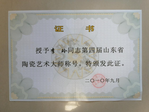 2014年被评为 “高级技师 ”同年入选 “山东省工艺美术协会理事”