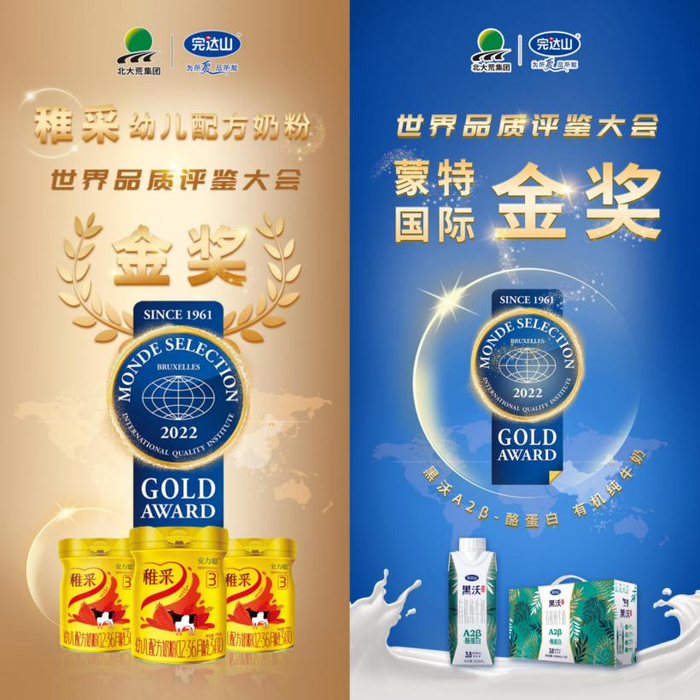 从质量类荣誉摘取来看,完达山乳业成绩斐然,赢得了国内外社会各界的认可。80 年代,完达山乳业连续四次获得国家食品质量最高奖“国家银质奖章”,是乳品行业唯一一家获得食品质量至高荣誉的企业,成为中国乳品质量的标杆。2000年获得国家质量技术监督局表彰,被授予“全国质量管理先进企业”称号。2022年,完达山乳业喜报频频,婴幼儿配方奶粉、黑沃A2β-酪蛋白有机纯牛奶和乳臻鲜酪乳风味发酵乳,获得了由乳制品工业协会颁发的“质量金奖”称号。稚采A2婴幼儿配方奶粉、黑沃A2β-酪蛋白有机纯牛奶更斩获了素有质量界“奥斯卡”之称的蒙特国际金奖。