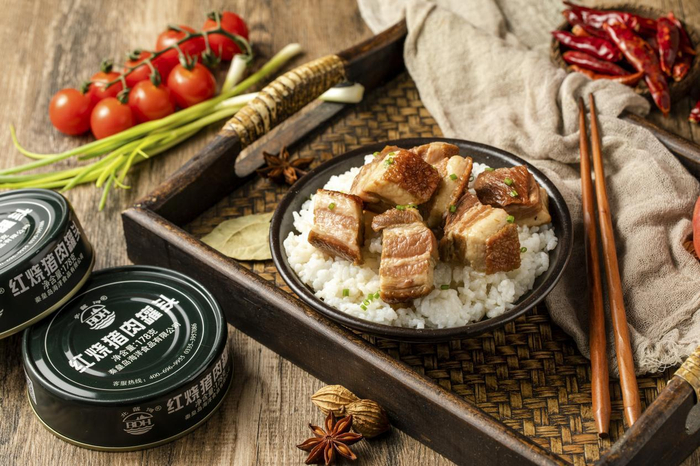 从经典配方,口感地道的红烧猪肉罐头,到全网销冠,回味无穷的红烧牛肉罐头;从豪华肉酱配比,老北京味十足的炸酱肉丁罐头,到深海鲜味馈赠,营养丰富的金枪鱼罐头;从鱼骨超级酥软,老幼伴饭皆宜的黄花鱼罐头,到开罐清新爽口,去油解腻拼盘的凉拌菜罐头,无论是家庭朋友聚餐,还是三五成群的席地而坐,“小绿罐”款款王炸的随意搭配,随时随地都可以吃出满汉全席的满足感。