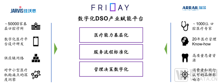 近日,瑞尔集团在港交所披露了一则合作信息,其携手佳沃思共同推出了数字化DSO(DDSO)项目——“FRIDAY”。该项目将依托于瑞尔集团20余年的行业积淀与佳沃思的数字化能力,赋能口腔医疗服务基层市场中的、医生创业型的、中小型单店口腔诊所或小型口腔连锁机构实现医疗技术基层化、服务流程标准化以及管理决策精细化。