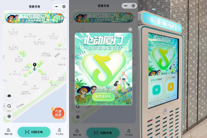 “心动厦门”也联合了曹操出行,推出“心动出行大礼包”,打造心动专车,进一步提升乘客对“上抖音享吃喝玩乐”认知,便捷出行和心动体验无缝衔接。趣味联名的另一亮点是和怪兽充电的合作,全城APP+线下高密度充电机曝光,心动不断电。