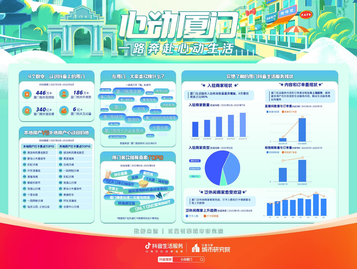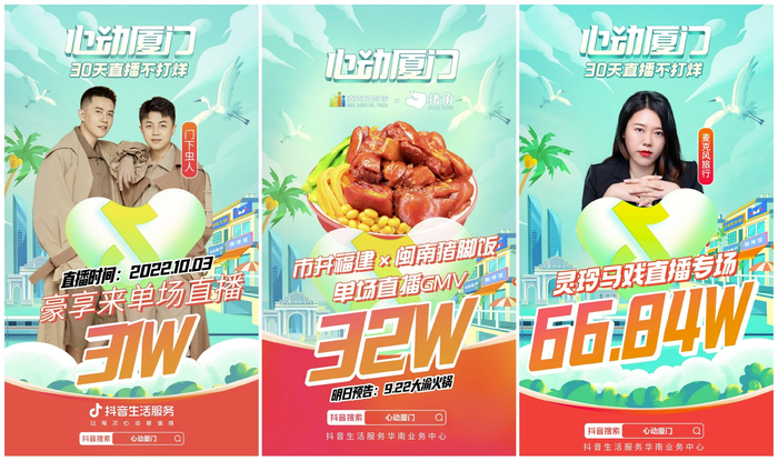 心动从线上发生。“城市地标热度+抖音热点+达人优质种草内容”三重内容热点发酵,让广大用户认识了新的厦门。