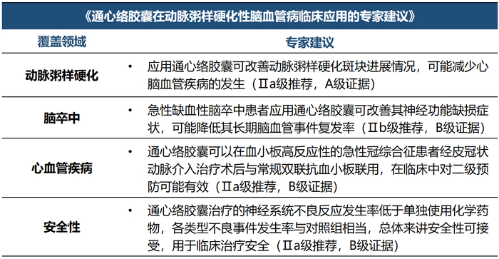 四川大学华西医院周东教授开展的通心络胶囊治疗急性和亚急性缺血性脑卒中的临床研究显示,通心络胶囊组治疗3个月、6个月、12个月的Barthel指数评分显著高于常规治疗组,并且通心络胶囊可降低卒中一年复发率33%。