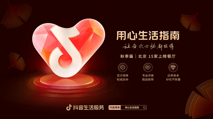 作为抖音生活服务平台推出的官方美食内容IP,《用心生活指南》以“好吃不踩雷”为核心,以“客观公正、非商业化”为宗旨严评精选,为用户提供值得信赖的品质餐厅指南。入秋了,抖音生活服务《用心生活指南》之“秋季篇”餐厅榜单限定发布,诚意奉上“避坑”的秋食餐厅宝典。
