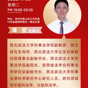 合规大讲堂第十讲将在2022年11月15日晚19点进行,由西北政法大学硕士研究生导师,西北政法大学企业合规研究院院长助理邹帆主讲,敬请关注。