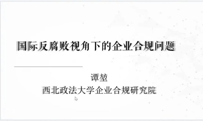 企业合规系列讲堂(九)谭堃:国际反腐败领域企业合规专题