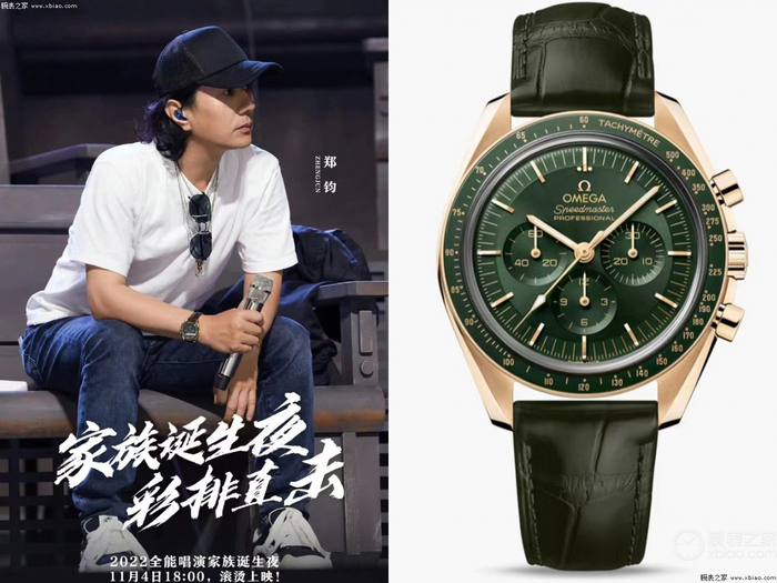 之前我们也曾经聊过他在节目中多次佩戴了超霸墨黑,符合他神秘、不羁的个人风格。而在成团夜中,哥哥们更多是享受舞台、感恩舞台,更像是一场难忘的毕业典礼,郑钧佩戴了欧米茄(OMEGA)的绿金霸演唱了《回到拉萨》,带给观众满满的回忆杀。
