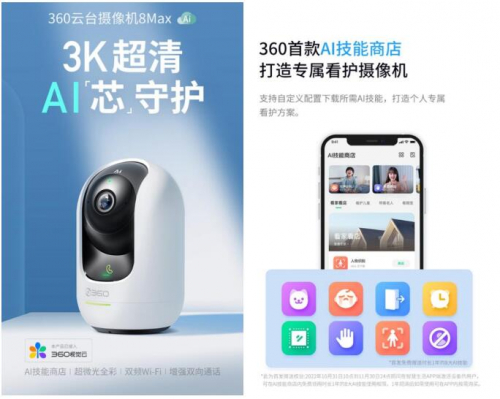 综上所述,全新发布的360云台摄像机8Max不仅有3K超清、独立音腔、双麦克风、双频Wi-Fi连接等亮眼配置,AI技能商店和强大的AI算力芯片加持,革新了用户的看护体验,适合看娃、看护老人、看家看店等多种场景。