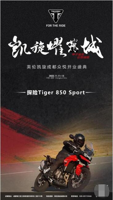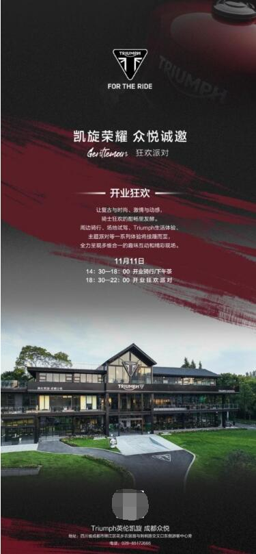 “Triumph英伦凯旋 成都众悦开业盛典嘉年华”报名通道即将开放,详情请关注成都众悦官方公众号“Triumph英伦凯旋摩托 成都众悦”。让我们共同期待Triumph英伦凯旋 成都众悦的绽放,一起见证纯真的英伦摩托车传奇的新篇章。