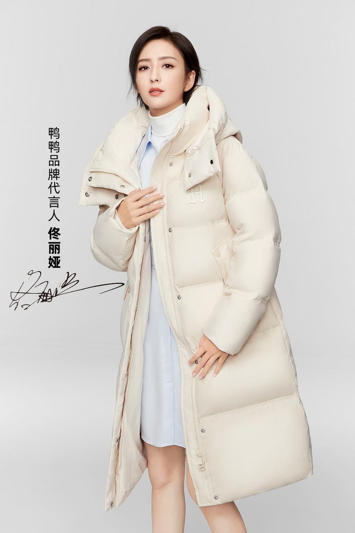 鸭鸭的新团队意识到,消费者对鸭鸭的认知还停留在过去,品牌力已经滞后。但鸭鸭团队并不想把鸭鸭打造成一个新品牌,而是充分挖掘品牌的红色背景,继承和放大它的品牌资产。与此同时,为了消除老年化服装的刻板印象,鸭鸭的核心用户群定位到18-45岁。2020年,YAYA鸭鸭签约了首位代言人佟丽娅。除了佟丽娅的小名也叫丫丫外,佟丽娅多年活跃在电视荧幕前,具有较高的大众认知度,这与鸭鸭多年来深耕羽绒服以及成为国民品牌的心愿是契合的。代言人佟丽娅的选择起到了品牌定位的作用。