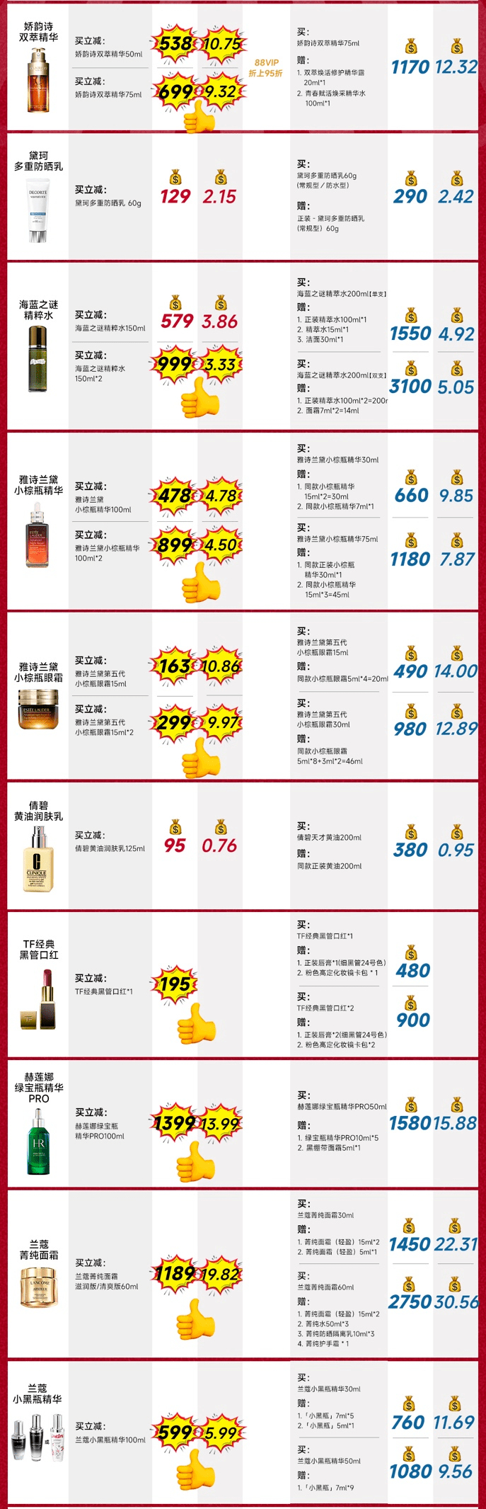 早在“双十一”预售日开启之前,不少社群就开始流传着一份通过金山文档传播的“无小样清单”。点开链接,显示的是包括海蓝之谜、SKII、娇兰、雅诗兰黛等在内的当下最炙手可热的美妆大牌,以及蜜蜂惊喜社直播间此次大促给到的“爆炸价格”。