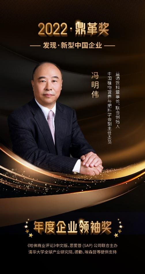 2022年第五届【鼎革奖】历时6个月,经过30位专家评委对221家参评企业的调研及评审,益通数科科技股份有限公司的肥易通农业生态平台,凭借其在农资领域形成了较大影响力,强大的服务能力成功当选年度供应链转型典范奖。与此同时,益通数科董事长、联合创始人冯明伟先生在本次评选中以个人突出的贡献当选年度企业领袖。