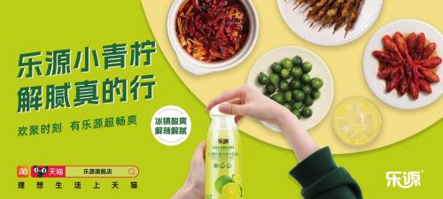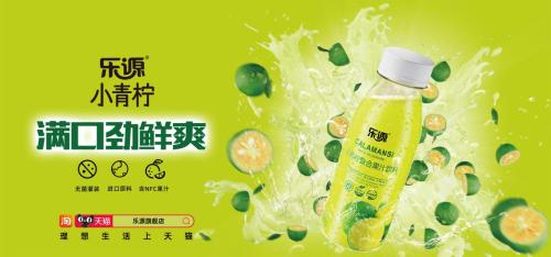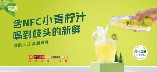 “乐源小青柠,满口劲鲜爽”为乐源小青柠产品的Slogan,直白的表达很好地阐述了其风味优势。