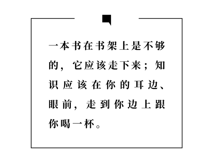 许知远 : 我们2005年开始做单向街的时候,是第一家持续搞活动的书店。我们突然意识到一本书在书架上是不够的,它应该走下来。作者把它讲出来,你可以参与提问、表达,单向就变成更活跃的空间。知识应该在你的耳边、眼前,走到你边上跟你喝一杯。见面的碰撞会激发出更多灵感火花,产生奇思妙想,这种场域的建立是非常重要的。《美丽心灵》那部电影告诉我们双螺旋结构就是在酒吧里发现的,突然间的争论一个理念就浮现出来了。