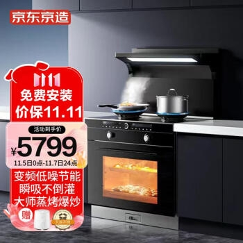 此外,这款集成灶还有一些细节处理非常贴心,例如专门设置了童锁、熄火保护、蒸箱安全门锁等功能,可以避免烫伤意外情况发生。京东11.11期间,这款70L蒸烤一体集成灶卓越版到手价最低仅需5799元。