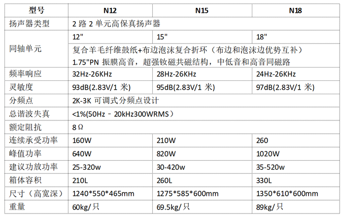 据了解,斯巴赫天尊系列(Noble)采用两分频两单元强钕磁共磁同轴方案设计,包括N12、N15、N18三个型号: