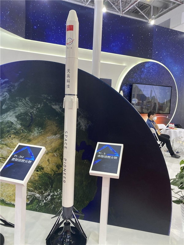 在现场天兵科技模型展区,据工作人员介绍,天龙二号液体火箭(以下简称“TL-2”)采用的高压补燃液体火箭发动机、水泥场坪简易发射、民用槽车自动加注等多项新技术,均为国内首创。相对于同规模的火箭,“TL-2”液体运载火箭在提升运力,增强可靠性的同时,大大降低了研制成本,满足用户低成本、快响应、规模化的小卫星及星座发射需求。