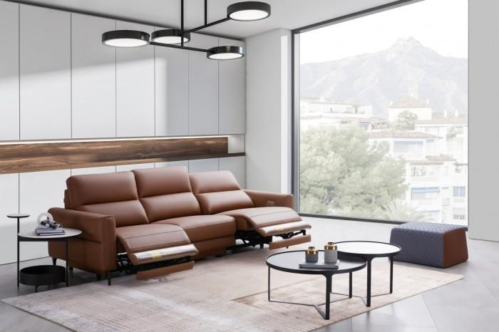 整体运用硬朗挺括的轮廓线条,配以流畅拉线,使得这款沙发呈现出英气十足的特质。而扶手运用硬朗圆润的设计,并辅以匠心独运的边角内嵌设计以及外侧精致走线,使得视觉效果立体饱满,大面积真皮又使得这款沙发的视觉质感和触觉质感更上一层楼。