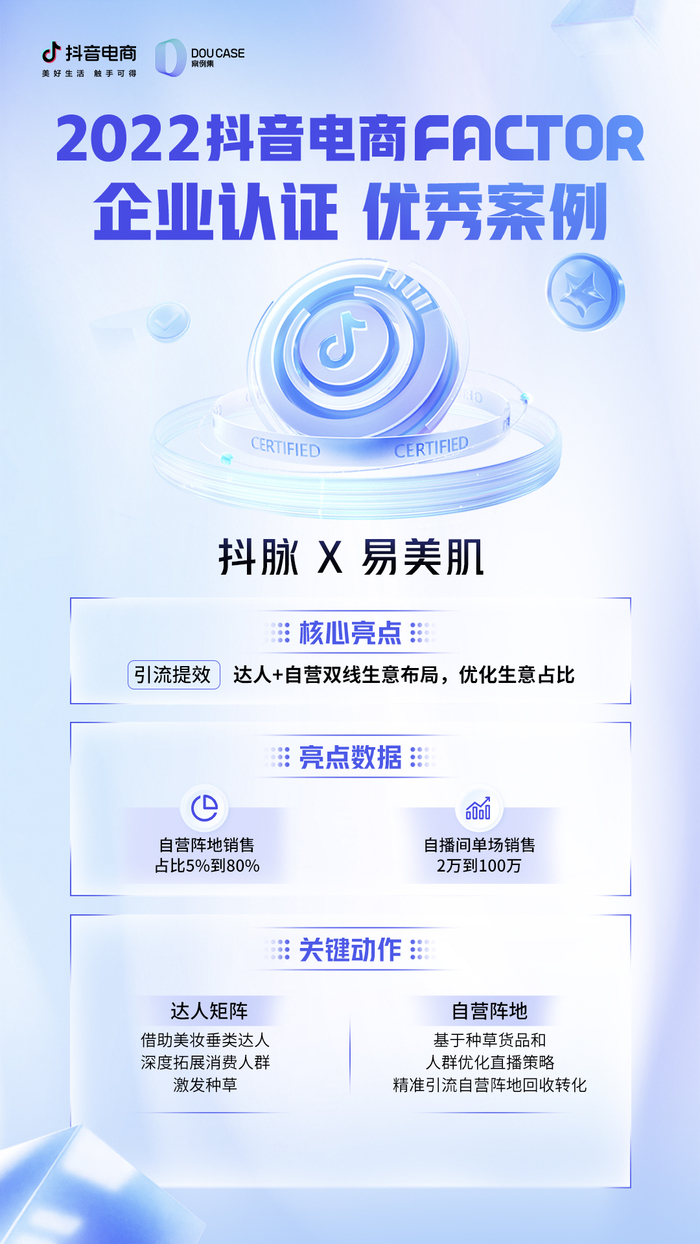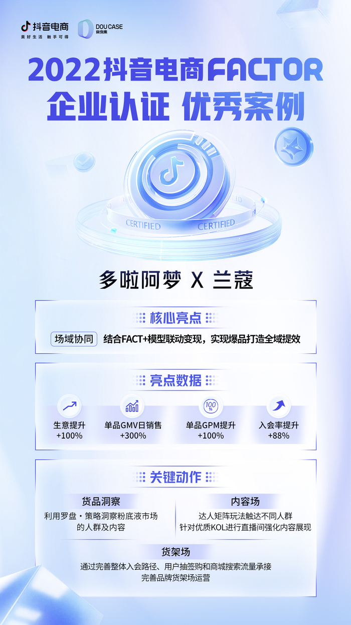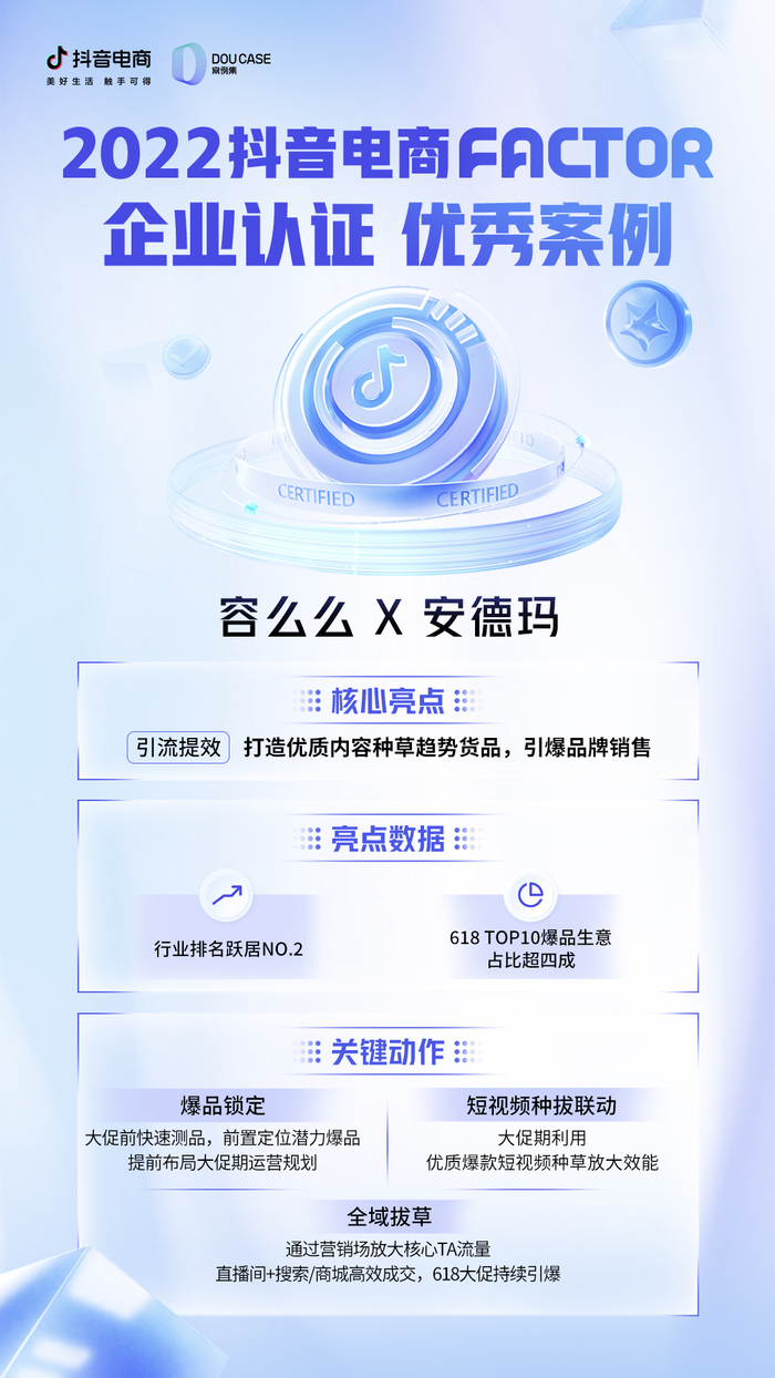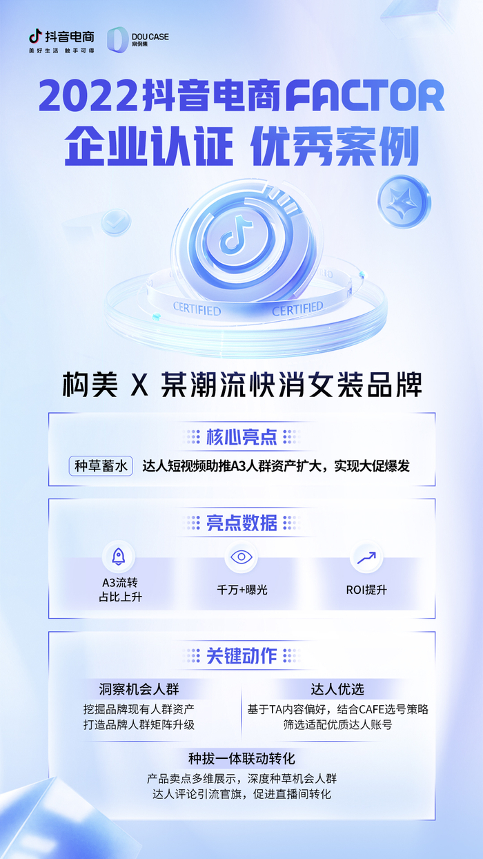 覆盖用户全场景、全链路购物需求,满足用户多元化的消费需求,并打通抖音电商所有场景,此次,不少入选FACTOR认证的服务商企业找到了自己的路径,它们分享了各具想法的营销“战役”。