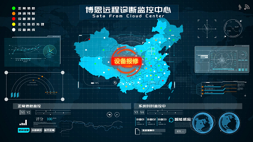 每一台小博都有一套智能远程预警系统,可以进行人机交互,可以语音报修或者联系售后。而小博背后是博恩中鼎的远程诊断监控中心,实时远程护航,监测设备每个零部件的运行状态,发现异常及时准备配件,工程师即可带上配件以最快速度达到现场解决问题,减少门诊损失。