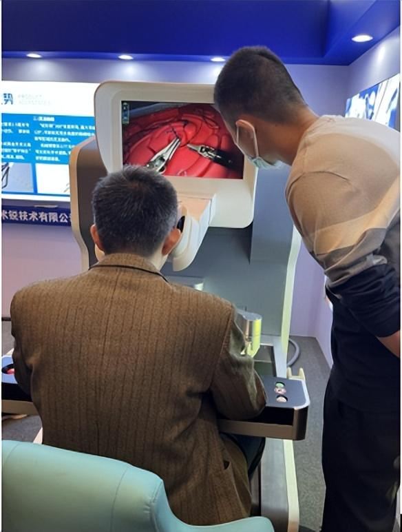 南昌大学第一附属医院的主任医师傅斌教授也亲临术锐展台。傅斌教授完全不需要现场工程师的指导,上手直接操作机器开始缝合打结。在连续完成几个缝合之后他感叹到:“术锐手术机器人操作手感很好,蛇形臂精巧又灵活,这一设计对于单孔开展很有帮助”。