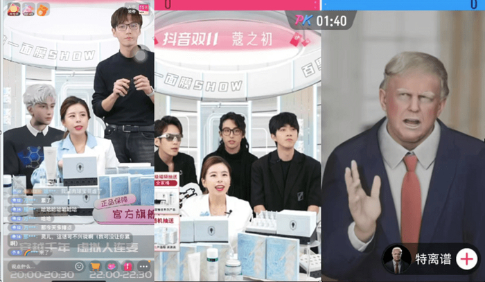 双十一期间,偶然刷到的一场直播引起了笔者的注意,不是某头部主播直播间、也没有掉智商的惊天折扣,而是让虚拟数字人穿越时空限制,进入品牌直播间,与真人主播同屏互动,与直播间粉丝在线交流。比如真人男友pk虚拟人男友,再比如铁面无私断案的“包包善”、东方草本名师“李秒珍”、甚至有世界闻名的领袖“特离谱”为蔻之初站台,经典形象在不同的空间交替,虚实结合、时空穿越,开启了穿越式虚拟直播带货新纪元,成功激发消费者参与热情。