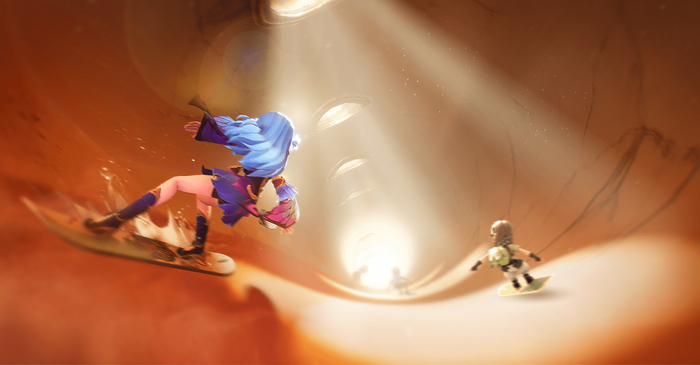 该活动中,超级QQ秀用户进入互动音画体验大厅后,可以穿上王者联名虚拟服饰,开启此次新次元的旅程。伴随着桑启身边的萤火微光缓缓升空,“新次元宇宙的王者”将操纵滑翔伞乘风飞行,穿越云端之境,而到达漠地沙海的关卡后,他们将接下“云中沙之盟”小队成员戈娅的挑战,踩着滑板从沙山顶飞驰而下,越过重重关卡挖掘宝藏。