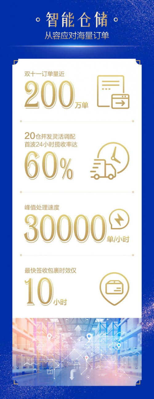 供应链方面,在科技的助力下,双十一期间若羽臣共发出将近200万订单,且在20仓并发的灵活调配下,首波24小时揽收率达到60%,峰值处理速度达到30000单/小时,最快签收包裹时效仅10小时。