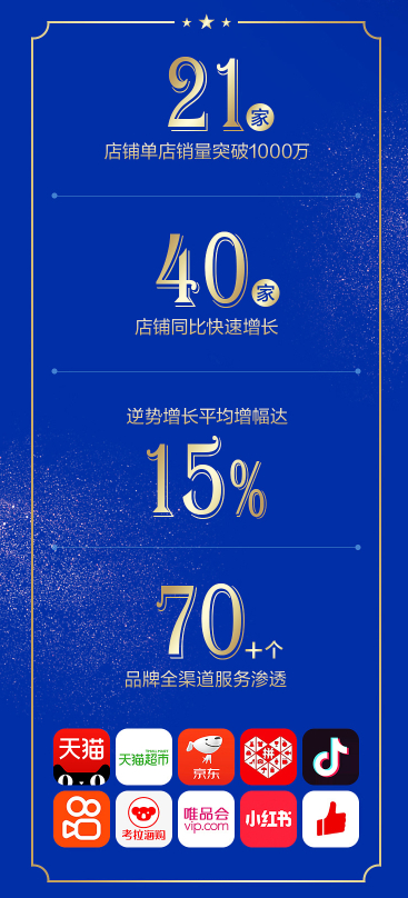 11月13日,头部品牌管理公司若羽臣发布了双十一销售业绩战报。凭借出色的业务能力和深厚的运营服务经验,若羽臣助力服务品牌店铺在双十一期间实现业绩增长,各品类再创新高。其中,21家店铺单店销量突破1000万,40家店铺同比快速增长,50多个单品稳居细分品类前五,且在行业下滑的同时,服务店铺实现逆势增长,平均增幅达15%。