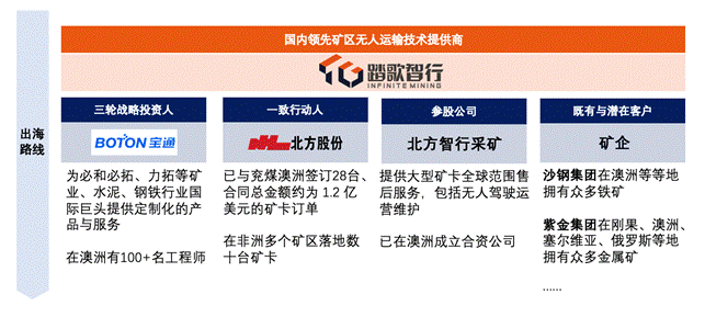 当前,踏歌智行推进中的境外矿区无人驾驶项目,包括澳大利亚某煤矿、某铁矿,非洲的某铀矿、某铜矿,南美洲的某铜矿项目等。上述项目涉及多个业内耳熟能详的中资矿企及国际矿业巨头,第一阶段涉及无人矿卡数量合计达数十台。