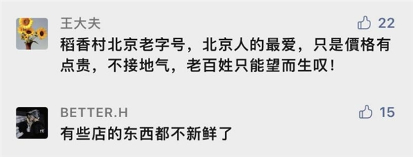 而在文章的评论区里,一些消费者也分享了自己的心声:“早就没有小时候吃的味道了”“该降一降价格了”“价格有点贵,不接地气”“有些店的东西都不新鲜了”。可见,繁杂的食品种类并没有为北京稻香村赢得一致的口碑,尽管消费者众口难调,但品质的把控和价格的平衡始终应是食品企业的及格线。