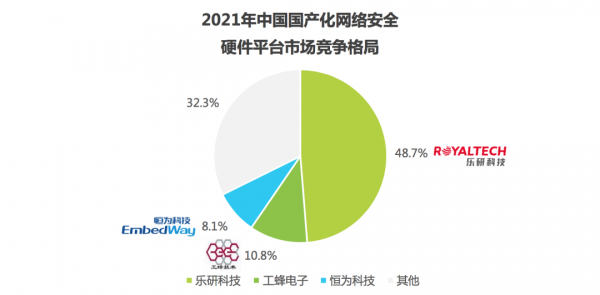 而根据此前艾瑞咨询发布的《中国网络安全硬件平台行业研究报告》,从整体网络安全硬件平台格局来看,台湾厂商仍占据传统网络安全主导地位,大陆厂商正逐步超越,处于市场领先位置。从市场格局看,当前中国整体网络安全硬件平台行业格局较为分散,台湾厂商仍然占据主要地位,内资厂商仅乐研科技一家入围,市占率达48.7%。国产化网络安全硬件平台市场则高度集中,其中,乐研科技一家厂商占据接近50%的市场份额。
