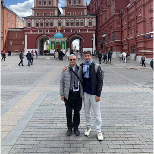 叙利亚前驻华大使穆罕默德•海依尔•瓦迪和儿子卡里姆•瓦迪生活照。