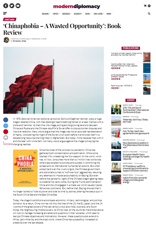 欧洲《现代外交》网站9月5日刊登了迪维扬.舒金达尔的署名书评,舒金达尔是印度新德里空中力量研究中心的研究员。