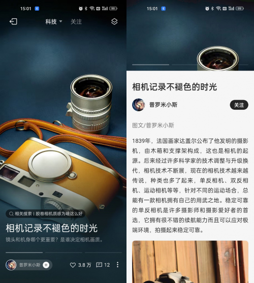 除了能给用户带来精彩的视觉享受以外,乐划锁屏展现的图片还关联了可延伸阅读的文章,用户通过点击标题文案或者上划屏幕即可进入详情页,了解到作品背后的故事、热点资讯和冷知识。闲暇之余,用户可以在片刻小憩中体验求知的乐趣,抚平因为生活和工作带来的焦虑,也会更期待下一次与乐划锁屏的遇见。