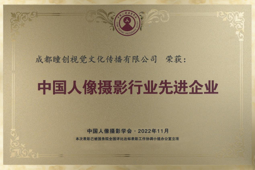 瞳创摄影荣获中国人像摄影学会2022年度先进企业奖