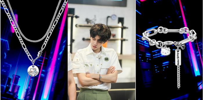 潮银饰系列则是充分体现了周大生的“设计之精”,既创新了一向软萌的hello Kitty的形象,让其兼具简约与z世代偏爱的时尚感,还深受代言人喜爱,在出席各类综艺上都有佩戴。