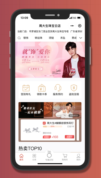 “周大生珠宝云店”更是突破了门店经营时间与空间的界限,打造更加便捷、更多元化的消费方式,消费者无需下载任何APP,只需要通过微信即可实现24小时在线随时选购,并能根据自己的时间到店取货。同时云店小程序还会推出优惠券、回购券、砍价和团购、限时秒杀等互动营销活动,消费者可轻松参与,随心购买,满足了新一代消费者更具个性化、更具体验感的全新需求,提高了门店复购率,还增加了二次营销触点,辐射更广的潜在人群。
