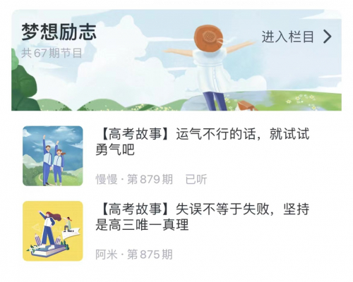 《梦想励志》栏目有很多真实的高考故事,通过分享高考故事,能够激励学生,让高中生有一定的启发,在学习过程中也更有动力。