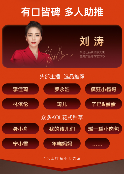 赢得消费者信赖的品牌,自然有口皆碑。凭借着高品质产品,这个双十一,凯迪仕的多款智能锁获得罗永浩、疯狂小杨哥、林依轮、琦儿、辛巴&蛋蛋等头部主播的大力推荐,进一步深化消费者心中智能锁=凯迪仕的品牌认知。
