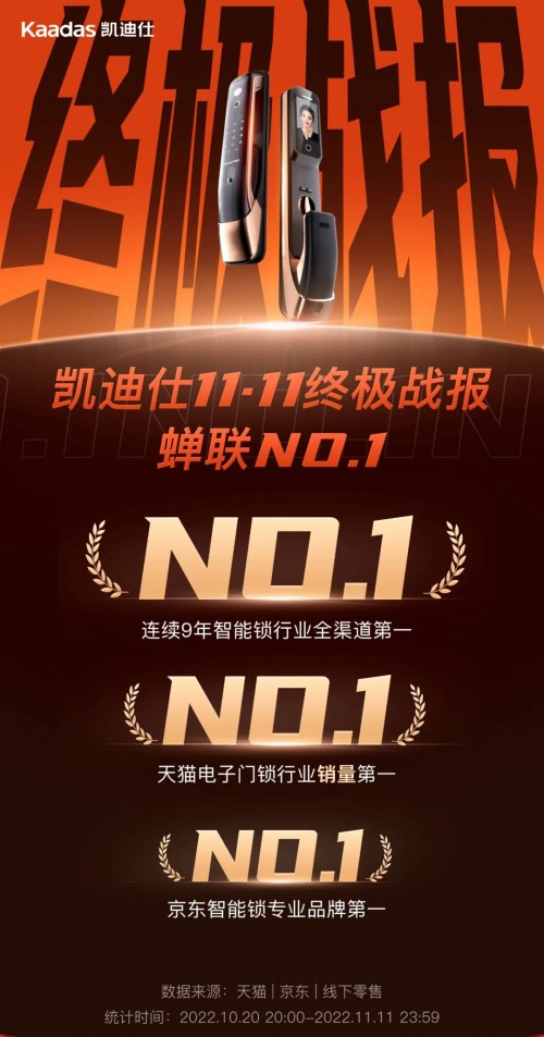 智能锁行业哪家强!这个双11凯迪仕连续9年全渠道第一!