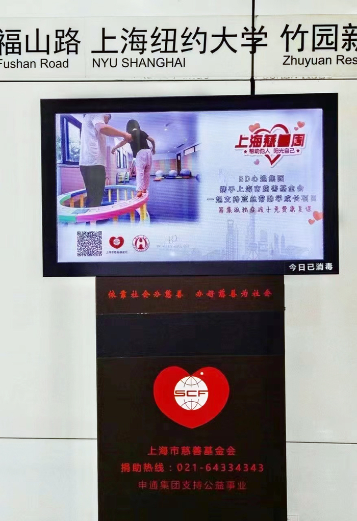 ▶ 2022年4月,上海疫情最严峻的时期,心追集团爱心捐赠蓝丝带30万元共渡时艰,并于9月携手上海市慈善基金会,点亮上海地铁48个爱心站点,筹集孤独症星宝免费康复课