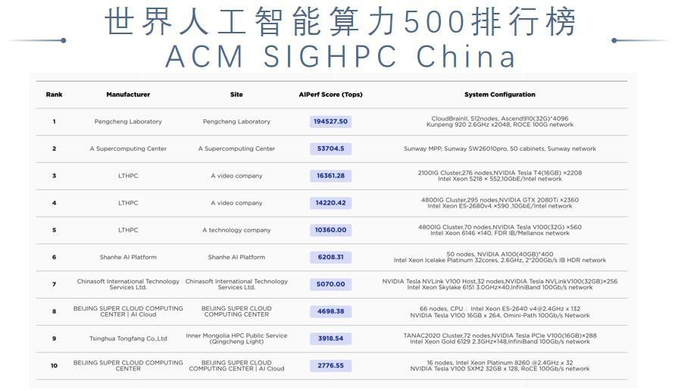 第四届中国超级算力大会ChinaSC2022 AIPerf500排行榜发布