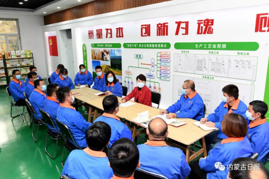 11月3日下午,内蒙古自治区党委副书记、自治区主席王莉霞莅临恒丰集团银粮面业实地考察了生产车间,详细询问了公司生产经营和疫情期间生产保供情况。并在一线生产车间结合内蒙古粮食产业特点对党的精神进行了宣讲。她说很早以前就知道恒丰河套牌雪花粉非常好,实体经济是经济社会发展的基石,希望企业继续学习贯彻领导“全方位夯实粮食安全根基,牢牢守住18亿亩耕地红线”的报告精神,发挥保障国家粮食安全基石的作用,做强做大内蒙古“河套”粮食品牌,让中国人的饭碗中装满粮,装好粮!
