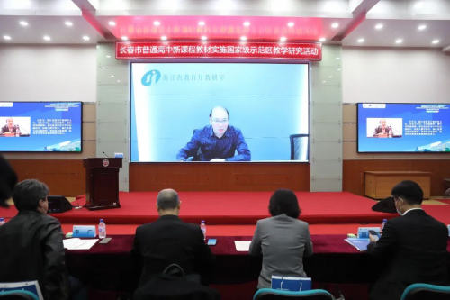 来自长春市的80余位校长和教师齐聚东北师大附中,共同探讨“深入实施新课程新教材,全面提升普通高中教学质量”这一基础教育重点、难点问题。浙江省教育厅教研室主任任学宝,东北师范大学教育学部部长吕立杰教授、东北师范大学教师教育研究院执行院长李广教授,长春市教育局基础教育处处长唐名刚、基础教育研究中心主任张月柱、基础教育研究中心副主任侯晓东,东北师大附中校长邵志豪、党委书记(明珠校区校长)刘丽君、常务副校长(净月校区校长)赵海军、东北师大附中各校区副校长刘玉新、张福彦、陈明堂、蒋礼、张继伟、乔阔,杭州铭师堂教学教研主任吴鎏琳、吉林省区域经理张雪等参加会议。上午会议由长春市教育局基础教育处处长唐名刚主持,下午会议由东北师大附中高中部副校长刘玉新主持。