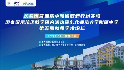 奋斗创造历史,实干成就未来。为充分发挥教研科研对教师专业发展的引领作用,进一步推动普通高中新课程新教材实施背景下教学改革研究,“长春市普通高中新课程新教材实施国家级示范区教学研究活动暨东北师范大学附属中学第五届教师学术论坛”于2022年11月11日,在东北师大附中隆重举行。会议由长春市教育局主办,东北师范大学附属中学、杭州铭师堂联合承办。